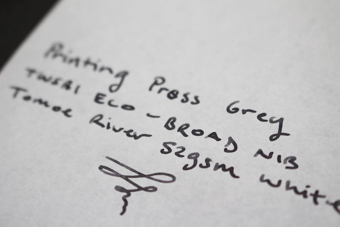 The warm grey hue, tinged with a hint of purple, is not just a colour but an emotion. It embodies the comforting, calming, and steadying feeling of a day spent at the press. Each 30ml bottle of this dye-based ink, suitable for all fountain pens, dip pens, and brushwork, is a testament to our commitment to quality and our pride in our Tasmanian heritage.