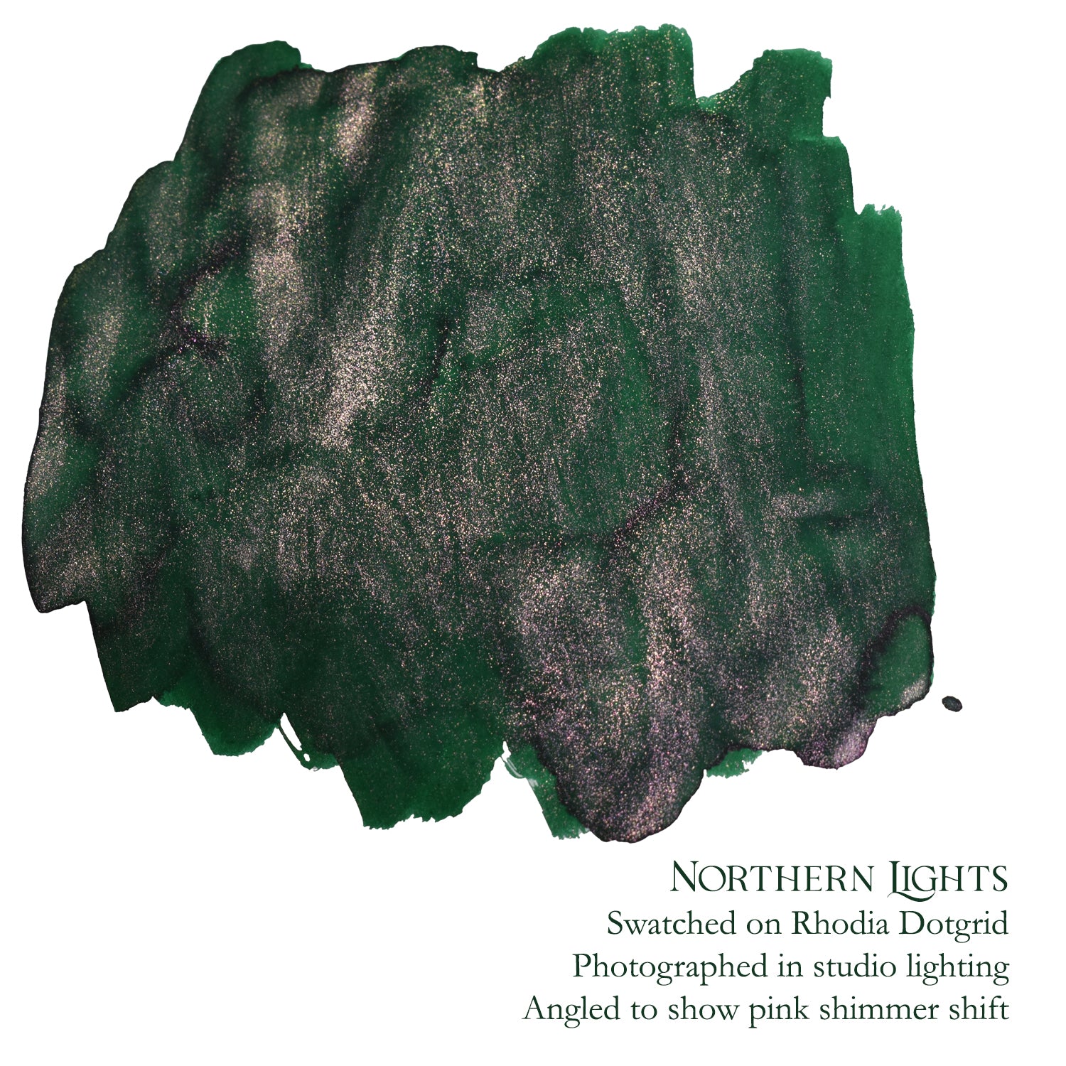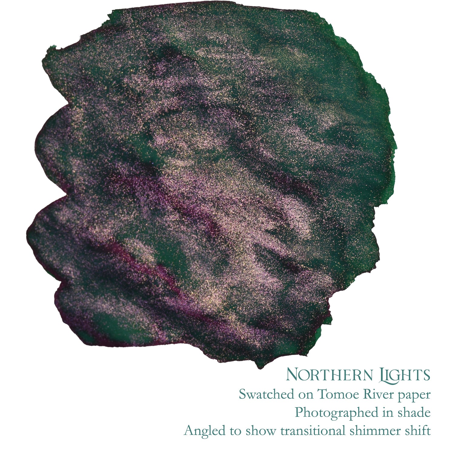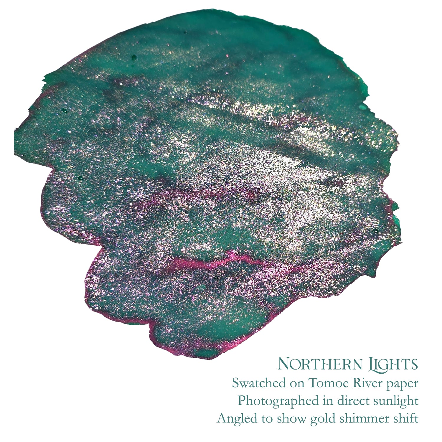 Arctic – Northern Lights is inspired by the aurora borealis as it arcs across polar darkness. The base is a deep glacial teal, balanced between evergreen and blue-black, creating a tone that feels both oceanic and atmospheric. In heavier application, richer forested shadows gather at the edges, while subtle plum undertones surface beneath the green.