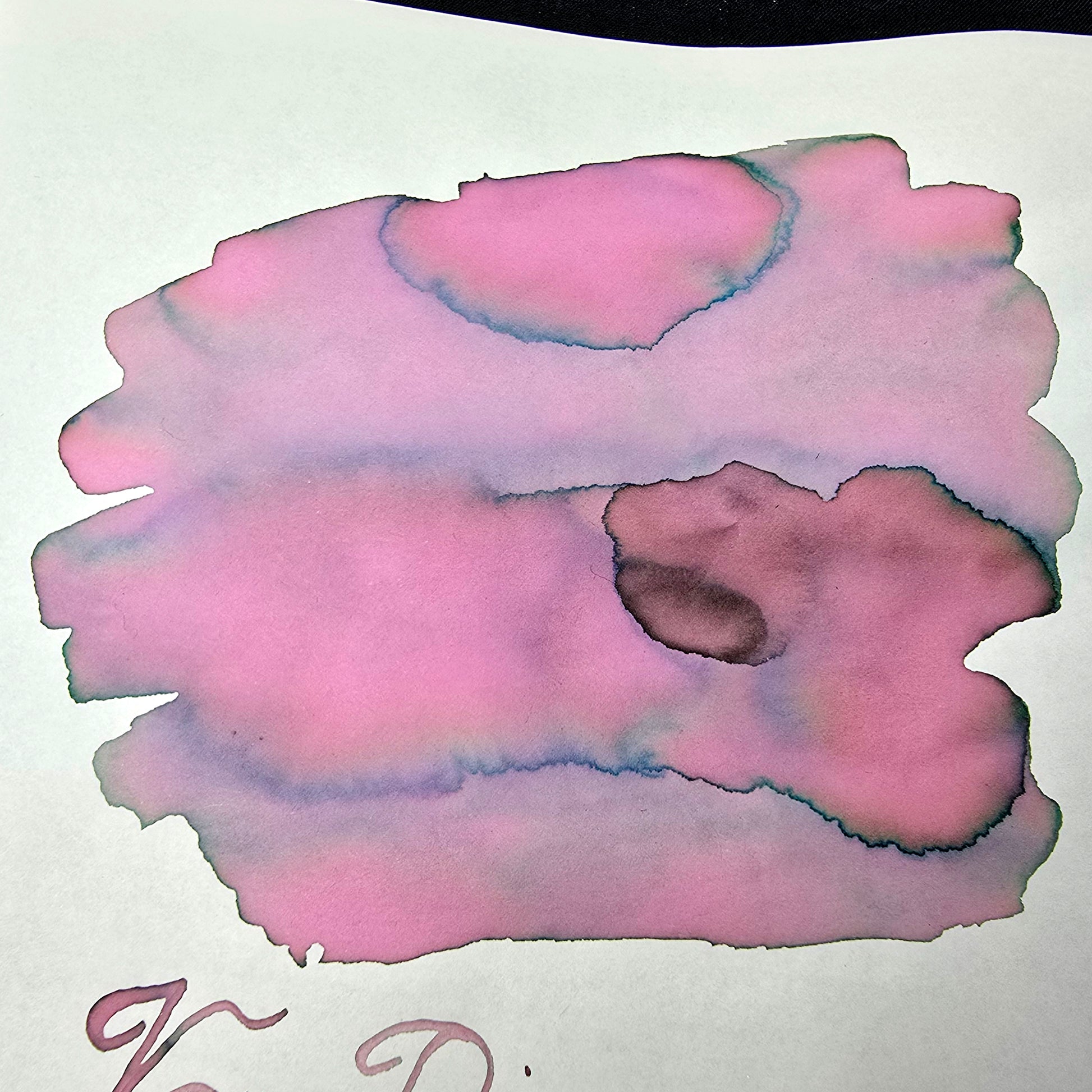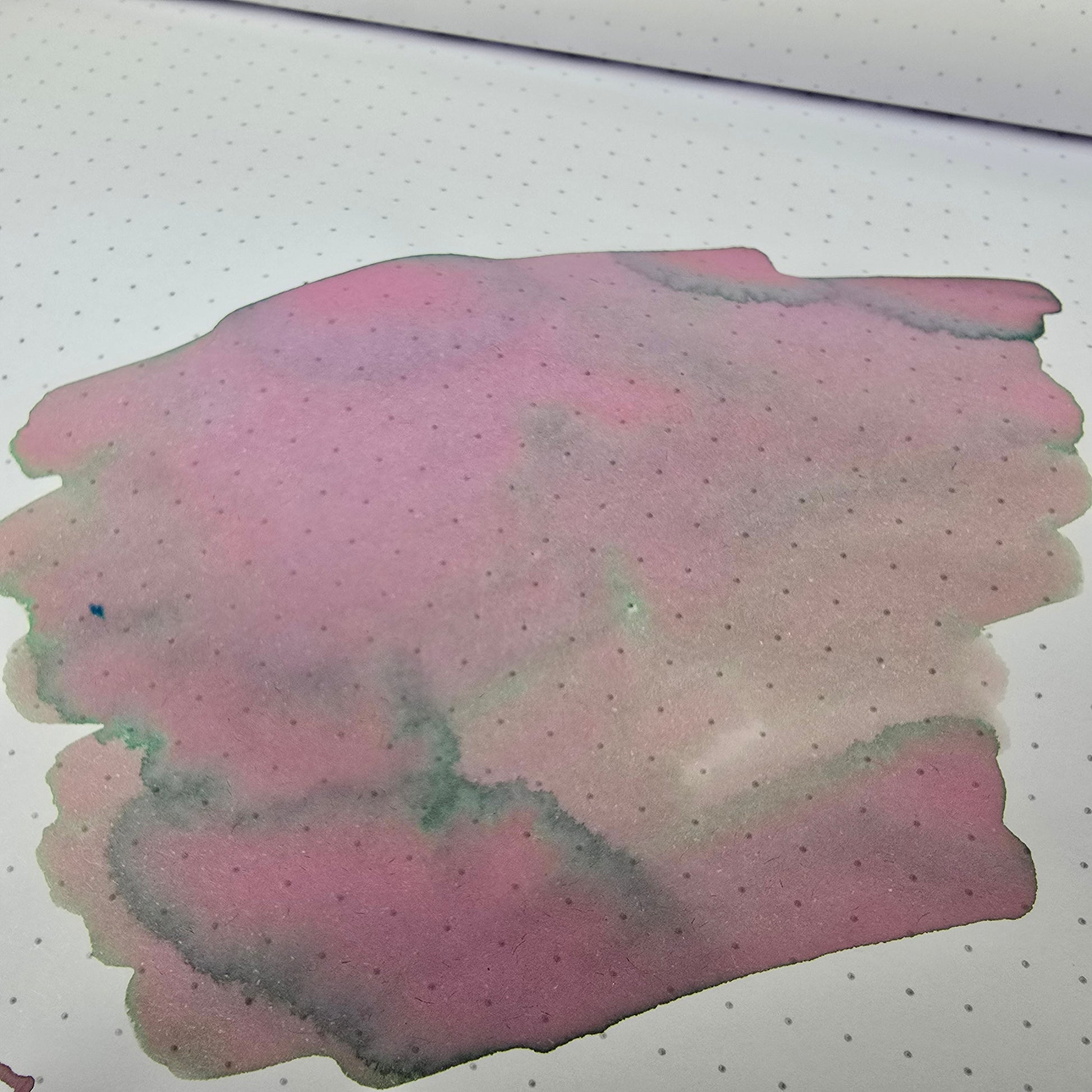 The ink itself reflects this rich balance. A ruddy umber base gives way to swirls of aquatic blue, earthy pink and mossy green and flashes of muted violet, depending on paper and pen. It separates with complexity, creating stunning chromatographic spreads and organic texture. Whether laid down wet and heavy or drawn out fine and light, River Bank reveals something new every time.